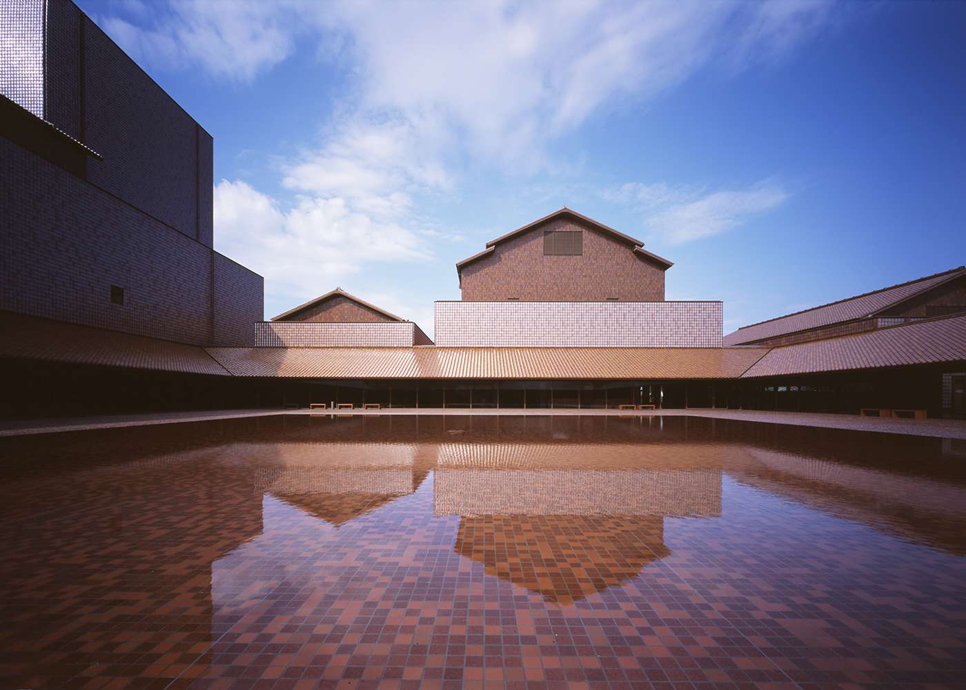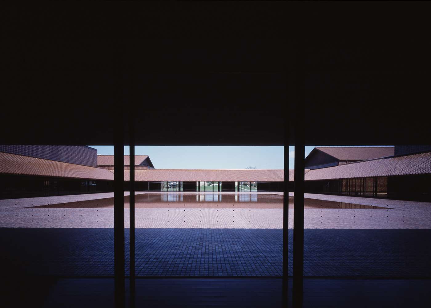Nicknamed the Grand Toit (“large roof” in French), the building’s expansive roof and broad walls are distinguished by some 280,000 reddish-brown sekishu-gawara (roof tiles), which are commonly used on homes in the Iwami region. Inside the museum, the art galleries are serene and spacious, designed to encourage quiet contemplation. The large square courtyard features a shallow reflecting pool, accentuating the building’s clean lines and the sky above.